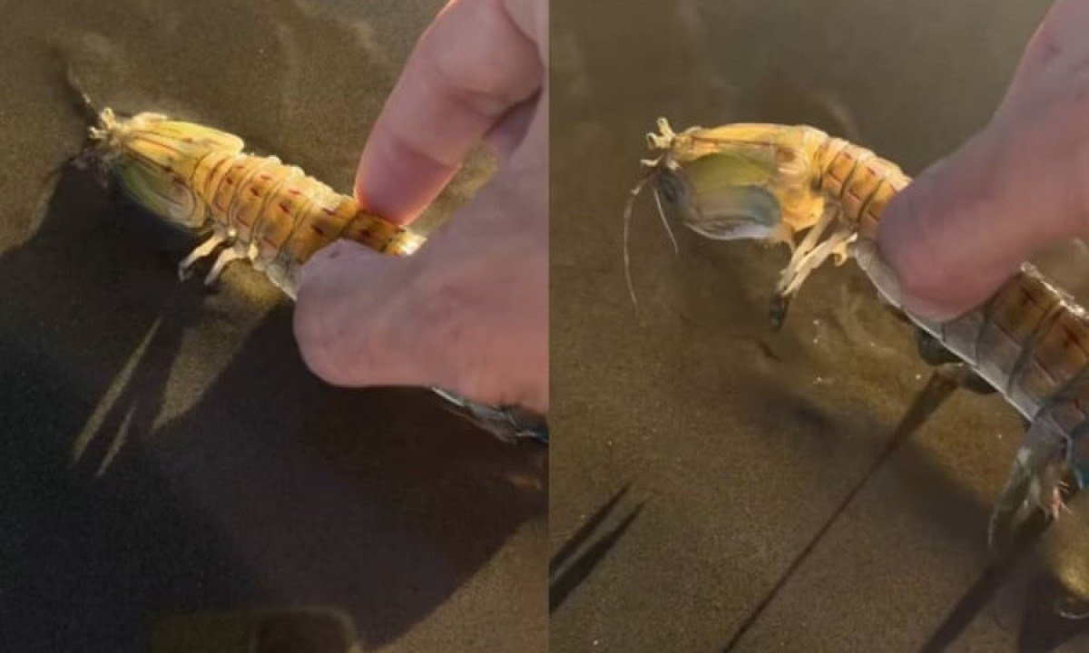 Susto e surpresa: Lagosta-boxeadora dá “golpe” em turista no litoral de São Paulo