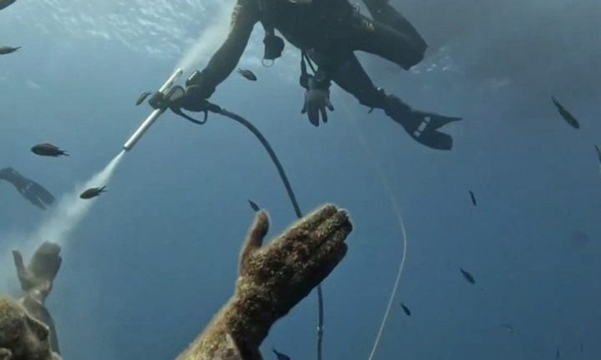 Por estar no fundo do mar, a estátua precisa receber manutenção feita manualmente por mergulhadores. Foto: Reprodução -