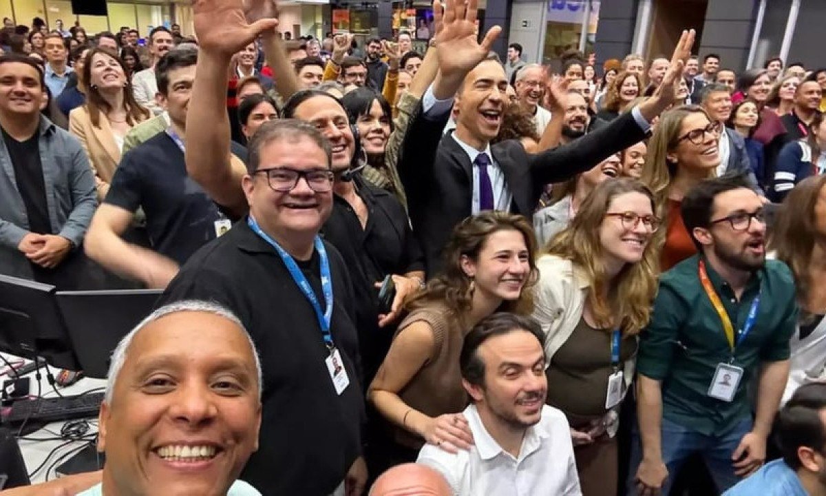 O jornalista publicou fotos nas redes sociais mostrando a homenagem que recebeu dos colegas, que o aplaudiram diante de um telão com a mensagem “valeu, Tralli”. Emocionado, ele agradeceu à equipe: “Valeu, redação de São Paulo! Muito obrigado por tanto carinho. Vocês todos habitam meu coração.” Foto: Reprodução / Instagram -