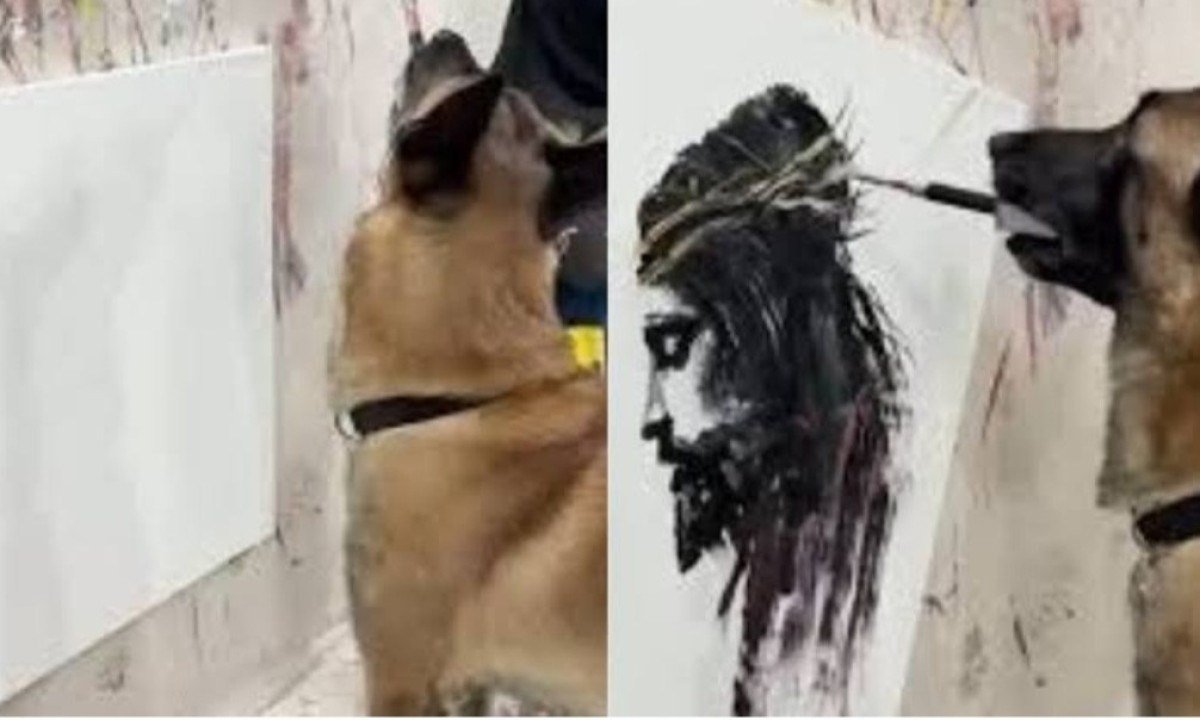 Cachorro com “habilidades artísticas” produz quadro de Jesus Cristo e viraliza