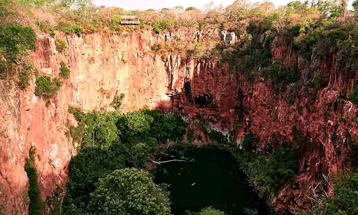 No fundo do buraco, há um pequeno lago, alimentado por água da chuva e fontes subterrâneas. Foto: Flickr Susy Suzuki -