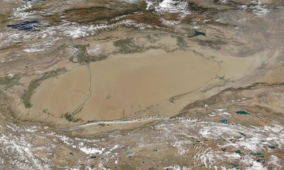 O Deserto de Taklamakan ocupa a maior parte da Bacia de Tarim, cobrindo aproximadamente 337 mil km².
