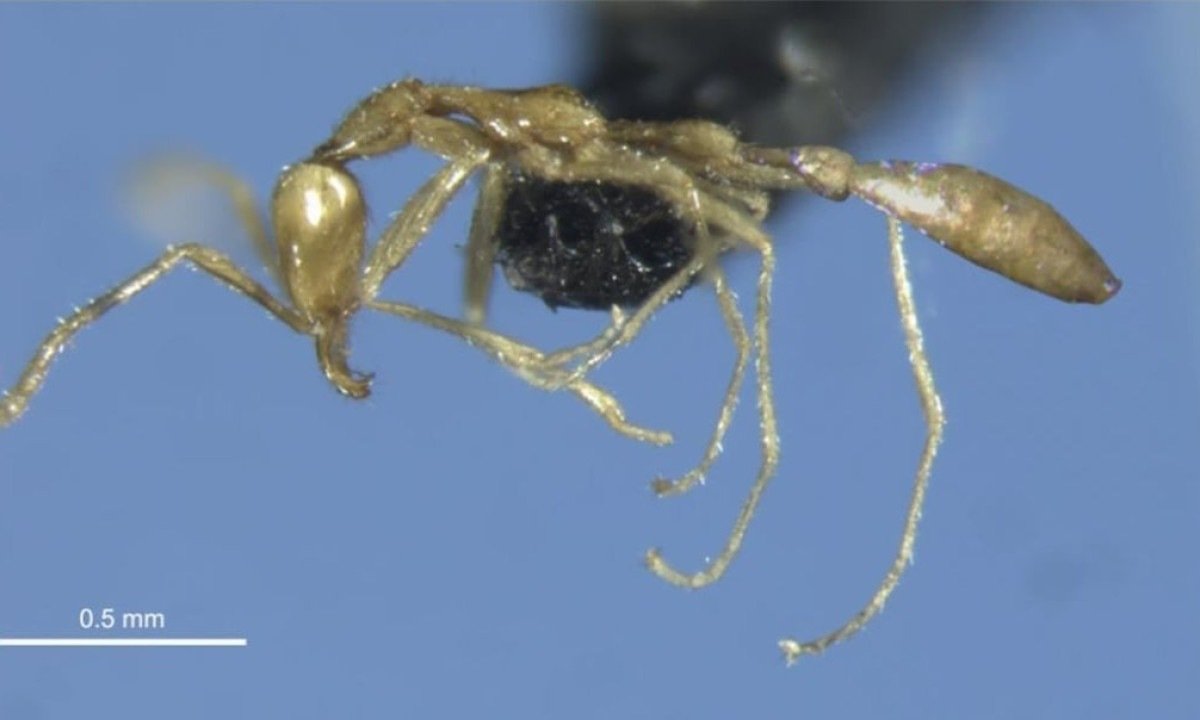 Com apenas 2 milímetros (tamanho degrão de areia), ela tem coloração que age como camuflagem. Ela cava e se move com desenvoltura no subsolo dificultando sua localização. Das cerca de 15 mil espécies de formigas do planeta, apenas 60 são da classe Leptanilla. Mas do novo tipo Voldemort, só dois espécimes foram encontrados nessa pesquisa. Foto: Divulgação