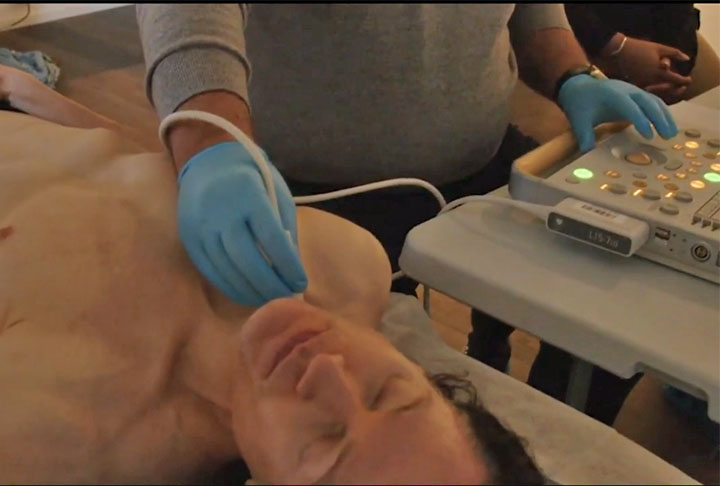 Com o ultrassom, ele vê como estão o coração, pulmão, ligamentos. "Usamos parâmetros médicos para saber a idade biológica do desempenho deles", diz Foto: Reprodução Globoplay