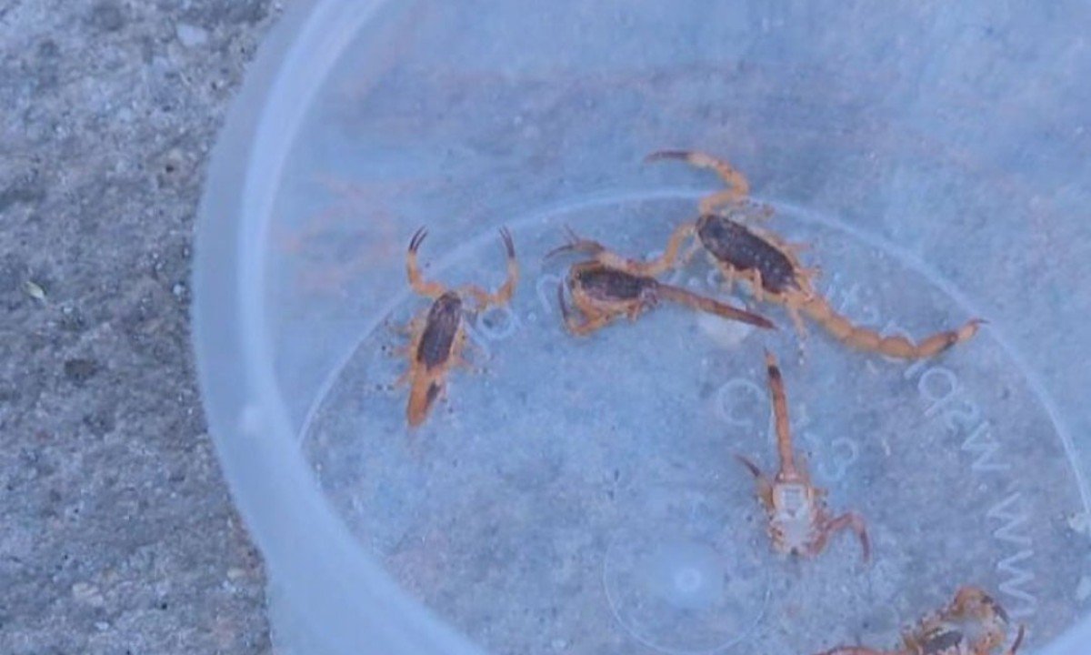 As pessoas capturam os escorpiões e colocam em potes. São vários ao longo do dia. Para evitar medidas equivocadas, o governo do estado distribuiu uma cartilha com orientações. Foto: Reprodução TV Globo