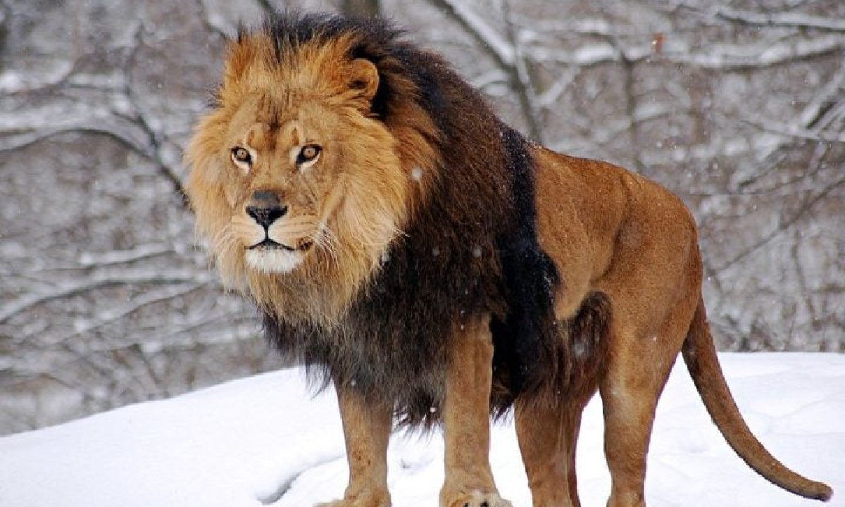 Os leões apresentam de 1,37 a 2 m de tamanho (corpo e cabeça), e sua cauda pode atingir até 100 cm de comprimento. O peso varia entre 120 e 190 quilos. Foto: Bernard Dupont wikimedia commons