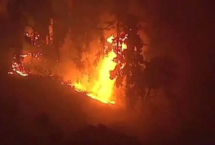 Na noite de quarta-feira (8/1) um novo foco de incêndio surgiu, afetando o Runyon Canyon Park, próximo à Calçada da Fama. Foto: reprodução/sbt