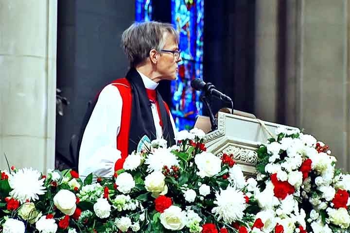 Em entrevista à CNN, a bispa explicou que quis contrariar Trump com “uma lembrança da humanidade” de imigrantes e da comunidade LGBTQI+. Ou seja, quis reforçar o aspecto humano de todos. Foto: Reprodução de Vídeo BBC