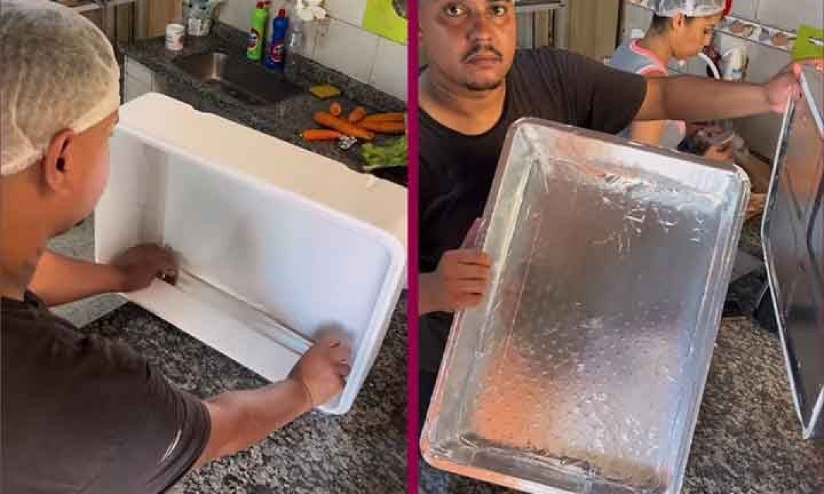 O isopor é muito usado para caixas que possam manter a temperatura dos alimentos e das bebidas, sendo essencial para ambulantes, por exemplo. Foto: Reprodução de vídeo TV Globo