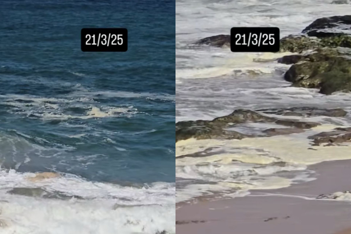 A entidade explicou ainda que as bolhas da espuma podem soltar substâncias tóxicas no ar, o que pode irritar os olhos de quem está na praia e ser especialmente ruim para quem tem doenças respiratórias. Foto: reprodução