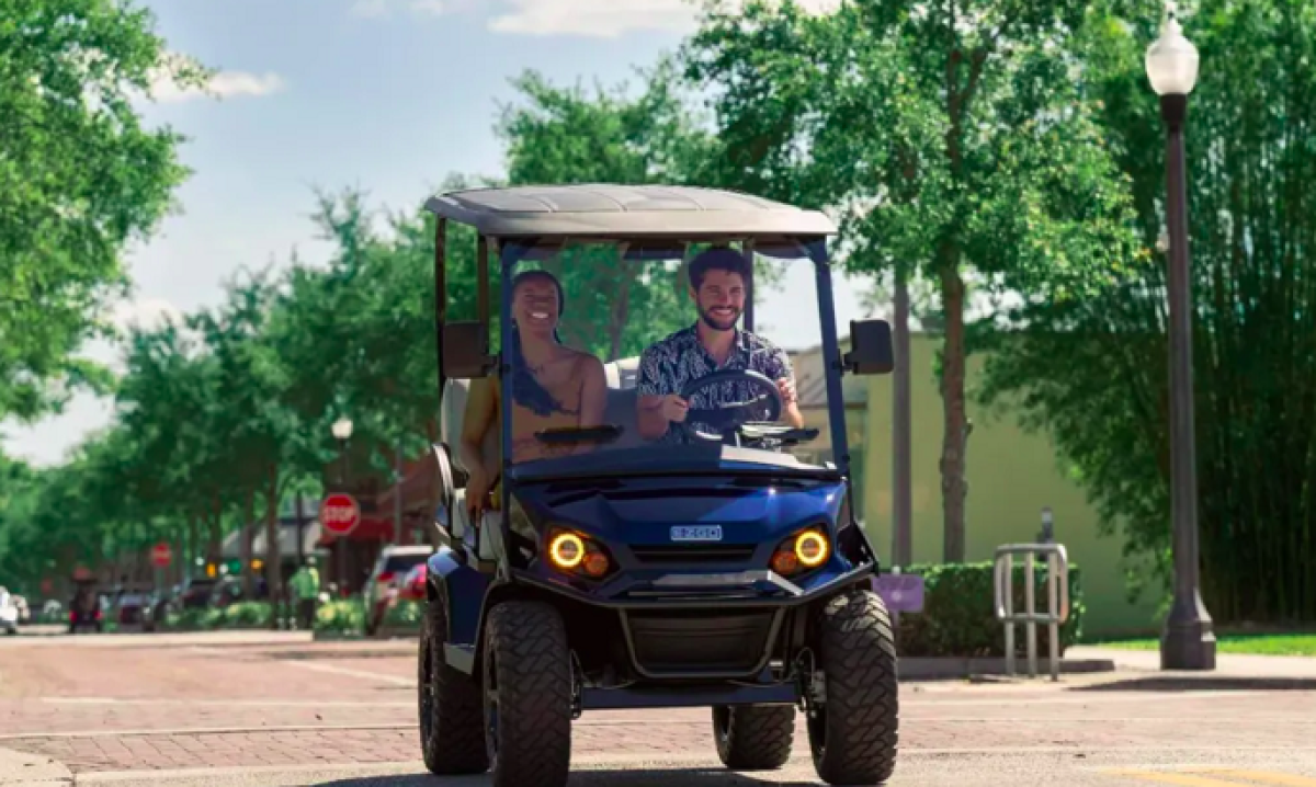 Carrinhos de golfe elétricos são usados para transporte nos EUA