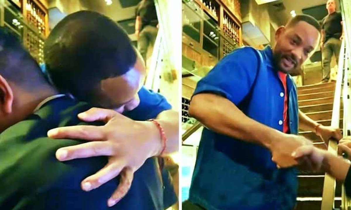 Will Smith ficou tão agradecido pelo presente que colocou o escapulário imediamente e, em retribuição, tirou sua própria pulseira e botou no pulso no fã, dizendo que ela também ajudaria em momentos de dificuldade. A troca de gentilezas viralizou na web. Entenda a importância dos escapulários. Foto: Reprodução De Rede Social