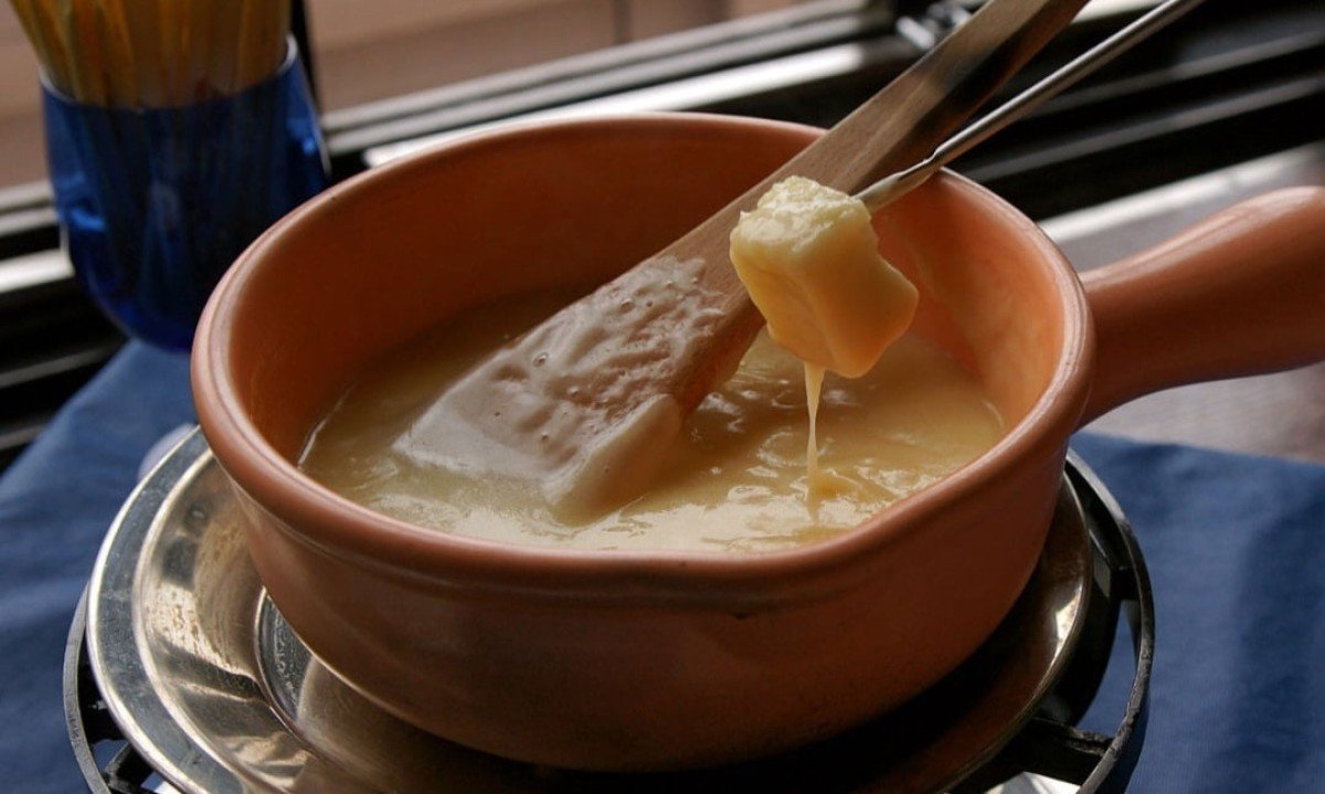 Comer fondue envolve todo um ritual, desde a escolha da panela certa até a maneira de degustá-lo. Tradicionalmente, utiliza-se um garfo longo para mergulhar os pedaços de pão no queijo derretido, e existem algumas regras de etiqueta a serem seguidas. Foto: FASTILY wikimedia commons