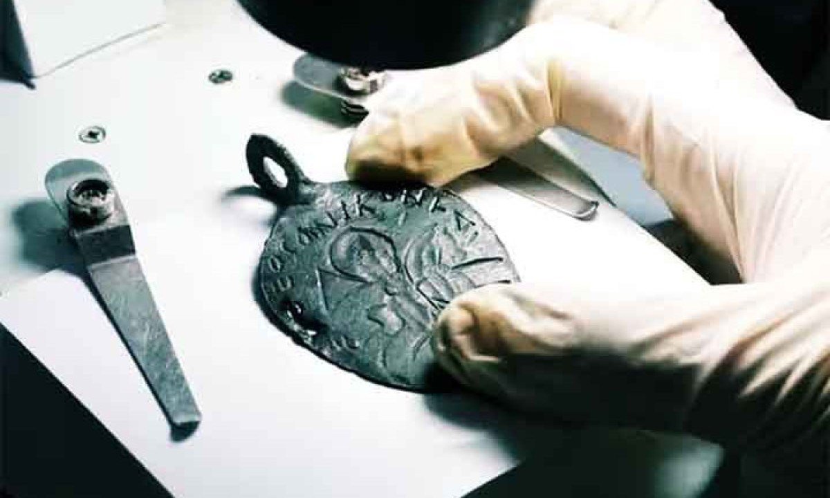 O arqueólogo Ersin Çelikba?, da Universidade de Karabük, explicou que o amuleto era utilizado como um talismã de proteção contra as forças do mal, especialmente entre os militares. Ela contém inscrições em grego antigo, um dos idiomas mais influentes da época. Foto: youtube Canal KBÜ MEDYA