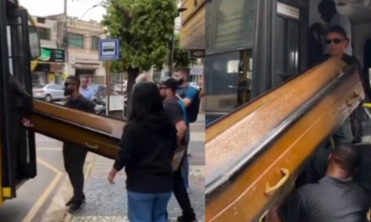 O grupo chegou a perguntar ao motorista se o morto pagaria a passagem. E, ao perceber a recusa do motorista em permitir a entrada do caixão, um homem ainda disse: "É a última viagem dele". Foto: Reprodução redes sociais