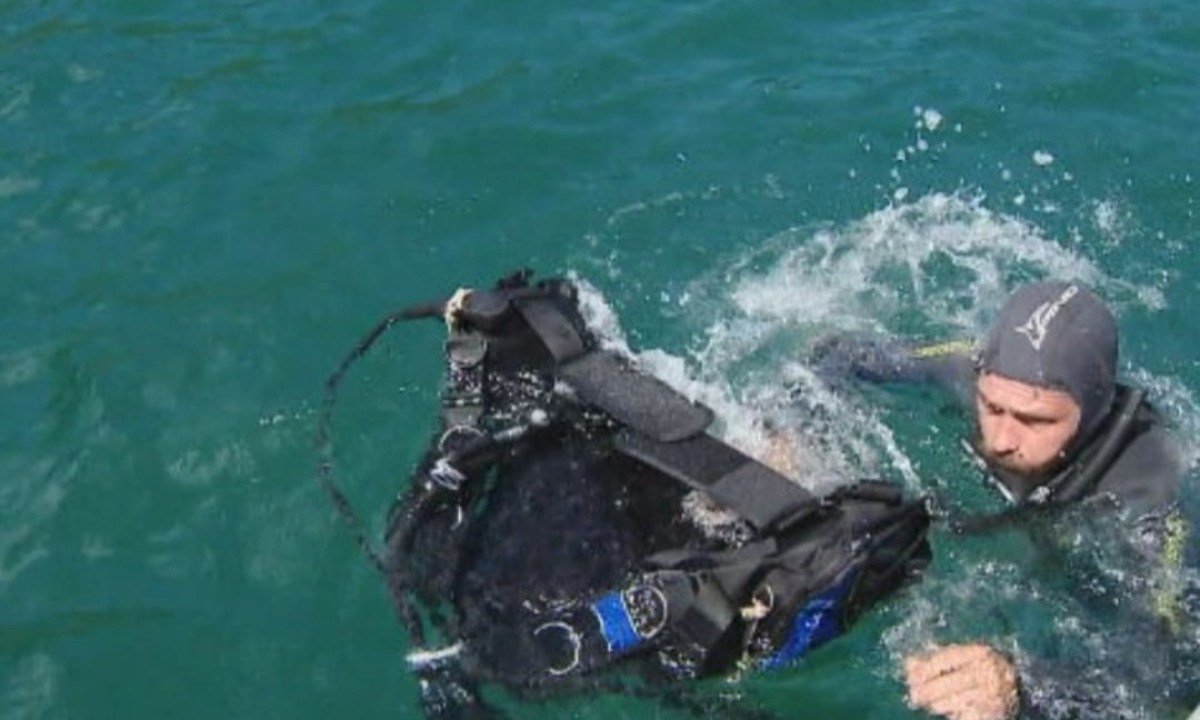 Com o método de remoção manual, mergulhadores retiram as colônias de coral-sol usando marreta e talhadeira Foto: Reprodução TV Globo