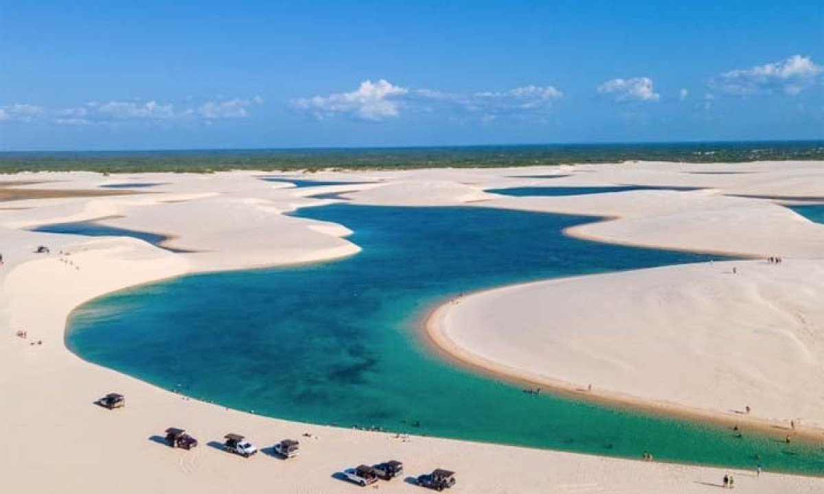 Barreirinhas é a base principal, que tem mais infraestrutura, maior variedade de restaurantes e onde está grande parte dos hotéis e pousadas. Por lá, tem o sobrevoo pelo local, os roteiros da Lagoa Azul e Lagoa Bonita, o passeio de lancha ou quadriciclo até Caburé (com Vassouras e Mandacaru), a flutuação no Rio Formiga e também passeios para Atins e Santo Amaro. Foto: Flickr/Klaus Langellotti Vello