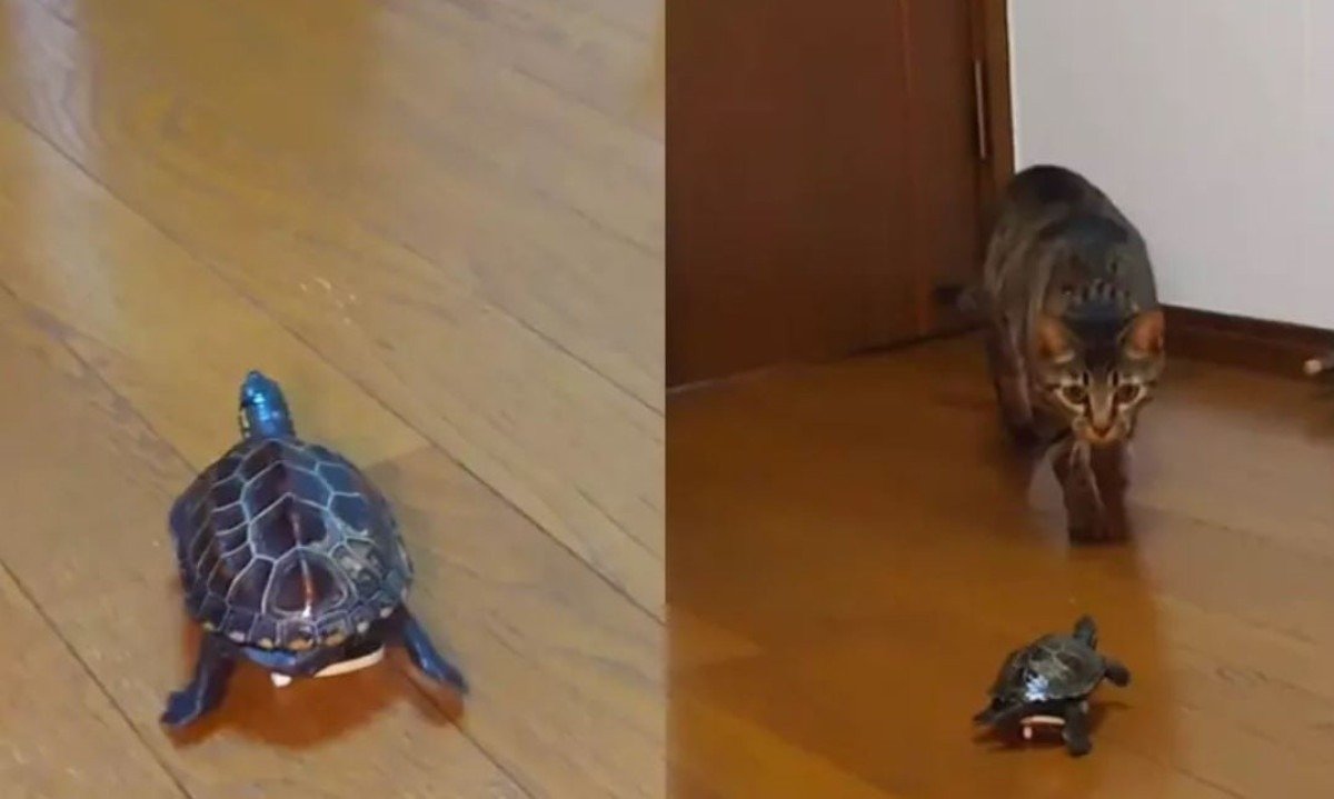 A tartaruga parece ter gostado do 'brinquedo' e demonstrou uma curiosa habilidade para deslizar pela casa . O tutor postou o vídeo e conseguiu rapidamente mais de 50 milhões de visualizações. "Agora sei por que tartaruga é um bicho tão lento", brincou um internauta, insinuando que ela precisa de rodinhas Foto: Reprodução rede social