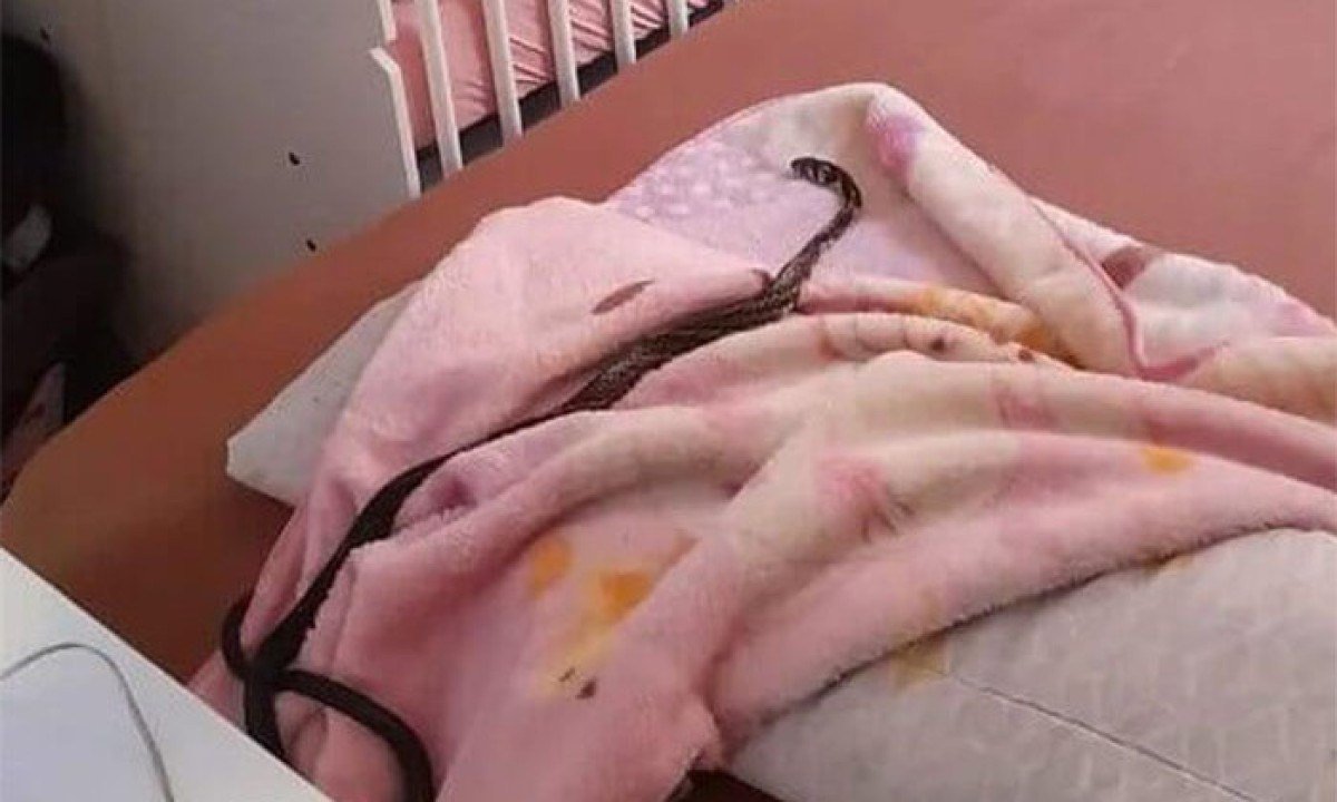Quando Duwe chegou, após o pedido de socorro, a serpente já tinha saído da cama e estava no berço. Foto: Arquivo pessoal Gilberto Duwe