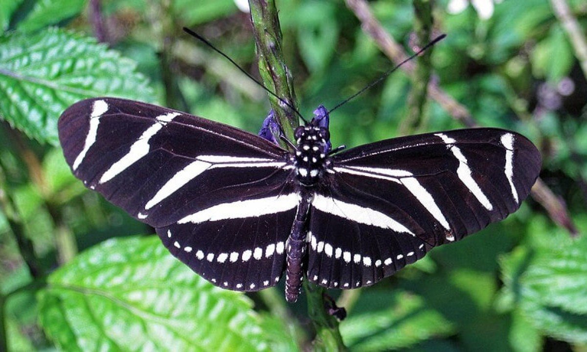 Borboleta Zebra - O nome é por causa das listras (que nem sempre são pretas e brancas; podem ter outras cores, como laranja, vermelho e azul). A cabeça tem pêlos e um par de antenas compridas. Vive na Península Ibérica e no Norte da África. Foto: Luis Markes / Flickr