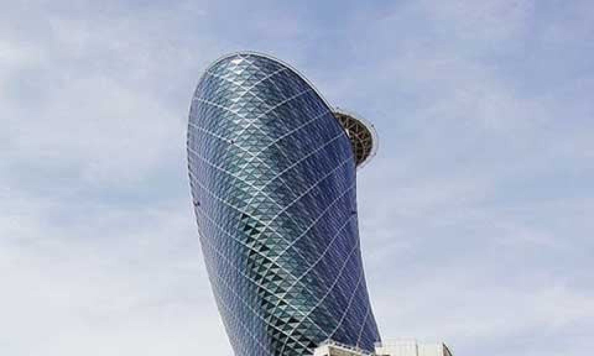 A Capital Gate é um dos ícones arquitetônicos mais notáveis de Abu Dhabi. Com 165 metros de altura e 35 andares, essa torre tem uma inclinação de 18 graus para o oeste - quase quatro vezes mais do que a Torre de Pisa. Foto: Flickr zameerdoom