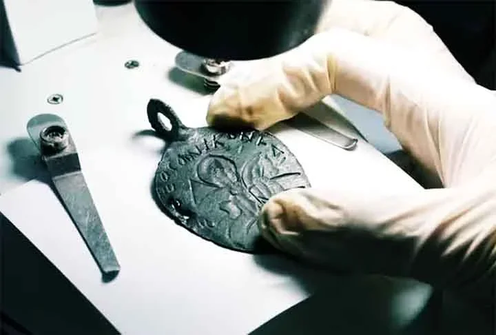 O arqueólogo Ersin Çelikba?, da Universidade de Karabük, explicou que o amuleto era utilizado como um talismã de proteção contra as forças do mal, especialmente entre os militares. Ela contém inscrições em grego antigo, um dos idiomas mais influentes da época. Foto: youtube Canal KBÜ MEDYA
