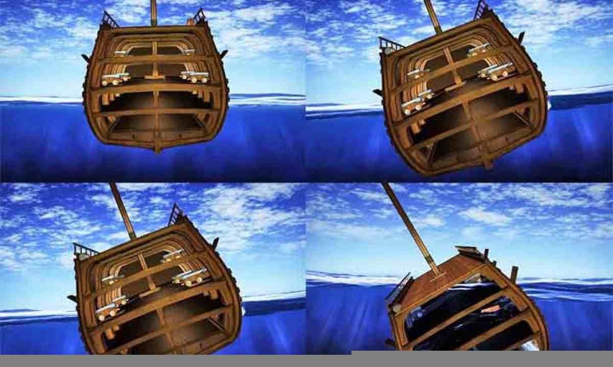 Diante das rajadas de ventos, o navio adernou para um dos lados e afundou após um volume de água entrar na embarcação pelas canhoneiras. Foto: Youtube Canal Vasamuseet