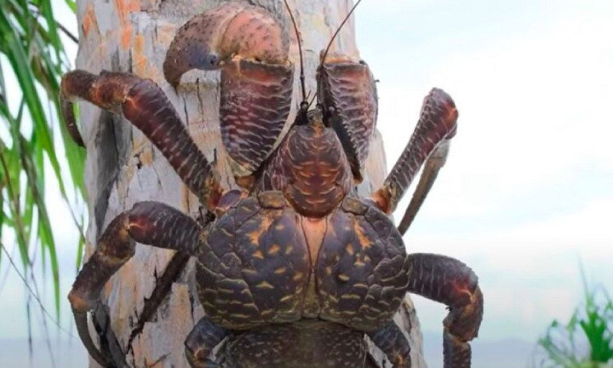 Uma das características mais marcantes desse artrópode é sua habilidade de escalar palmeiras conseguir cocos, que são parte importante de sua dieta. Foto: iNaturalist/Lennart Hudel