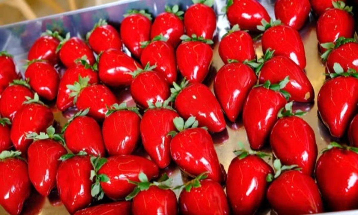 No Espírito Santo teve confeitaria que parou de fazer qualquer outro doce para se dedicar exclusivamente ao morango. Em entrevista ao G1, a confeiteira Millena Moreira exibiu os belos doces e disse que tinha até fila na porta. Parecia uma nova Páscoa. Foto: Divulgação Millena Moreira