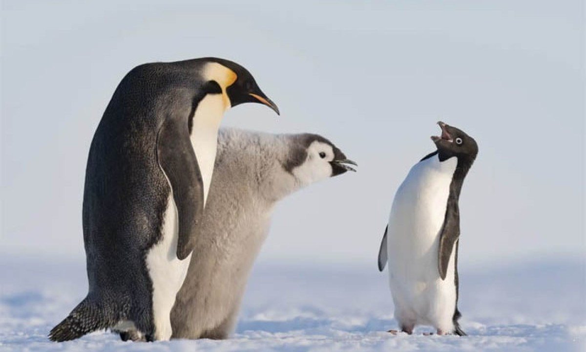 Os pinguins são carinhosos com os filhotes revezando os cuidados entre o macho e a fêmea. Os pais curiosamente se dividem na proteção dos ovos e depois dos filhotes, mantendo a segurança dia e noite. Foto: Ben Tubby FlickR wiki commons