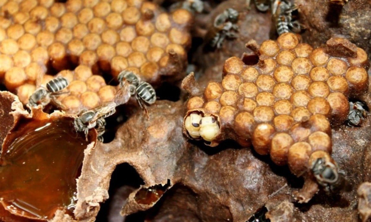 O modelo da colmeia é o tradicional, hexagonal, ou seja, com seis lados. E as abelhas já estão produzindo mel. Foto: Reprodução redes sociais