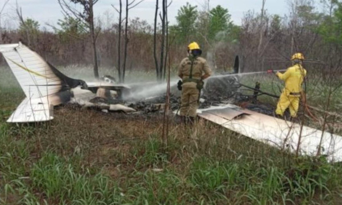 O piloto da aeronave, sem plano de voo, ignorou as ordens para ir embora e decidiu fazer um pouso forçado em área descampada ao sul da pista de Lábrea, próximo à Rodovia Transamazônica. Ele foi visto botando fogo no avião e fugindo. A Polícia Federal assumiu o caso. Foto: Divulgação Polícia Federal