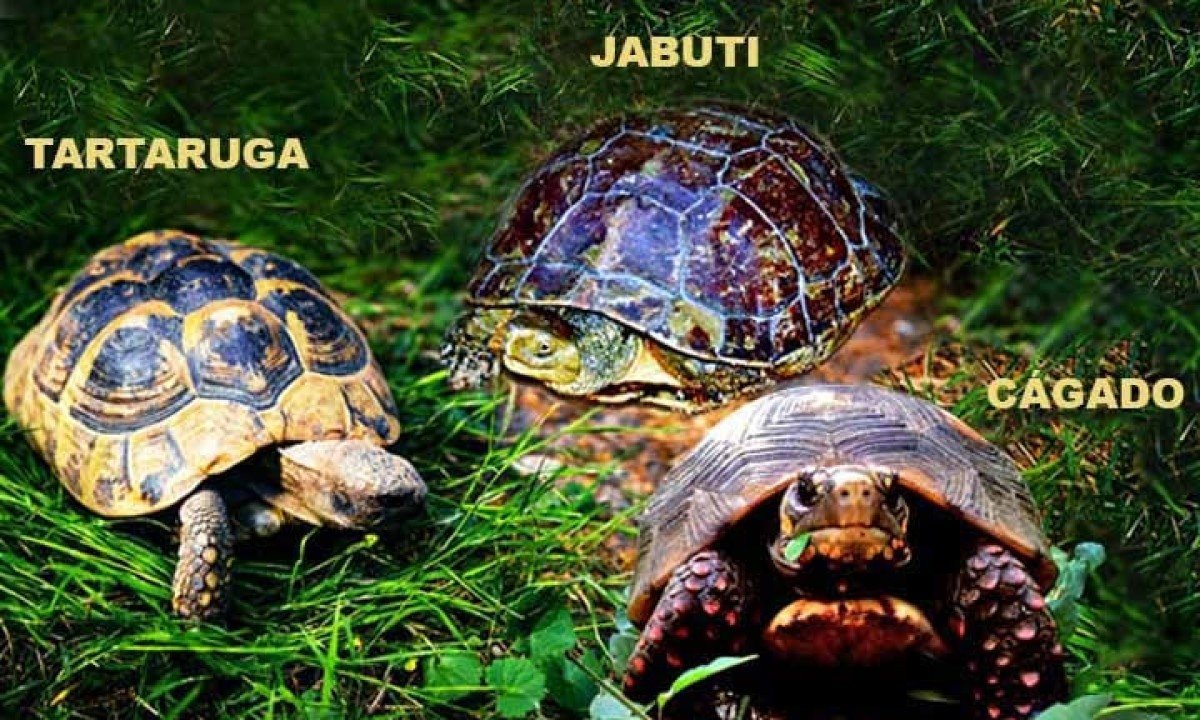 As tartarugas vivem na água salgada, têm patas em forma de nadadeiras e raramente saem para terra firme. Os jabutis são terrestres, têm casco alto e patas grossas adaptadas para andar no solo. Os cágados vivem em água doce, têm casco achatado e patas com membranas para nadar Foto: Imagem de Kanenori por Pixabay; Flickr Paula Luiza e Reprodução do Youtube