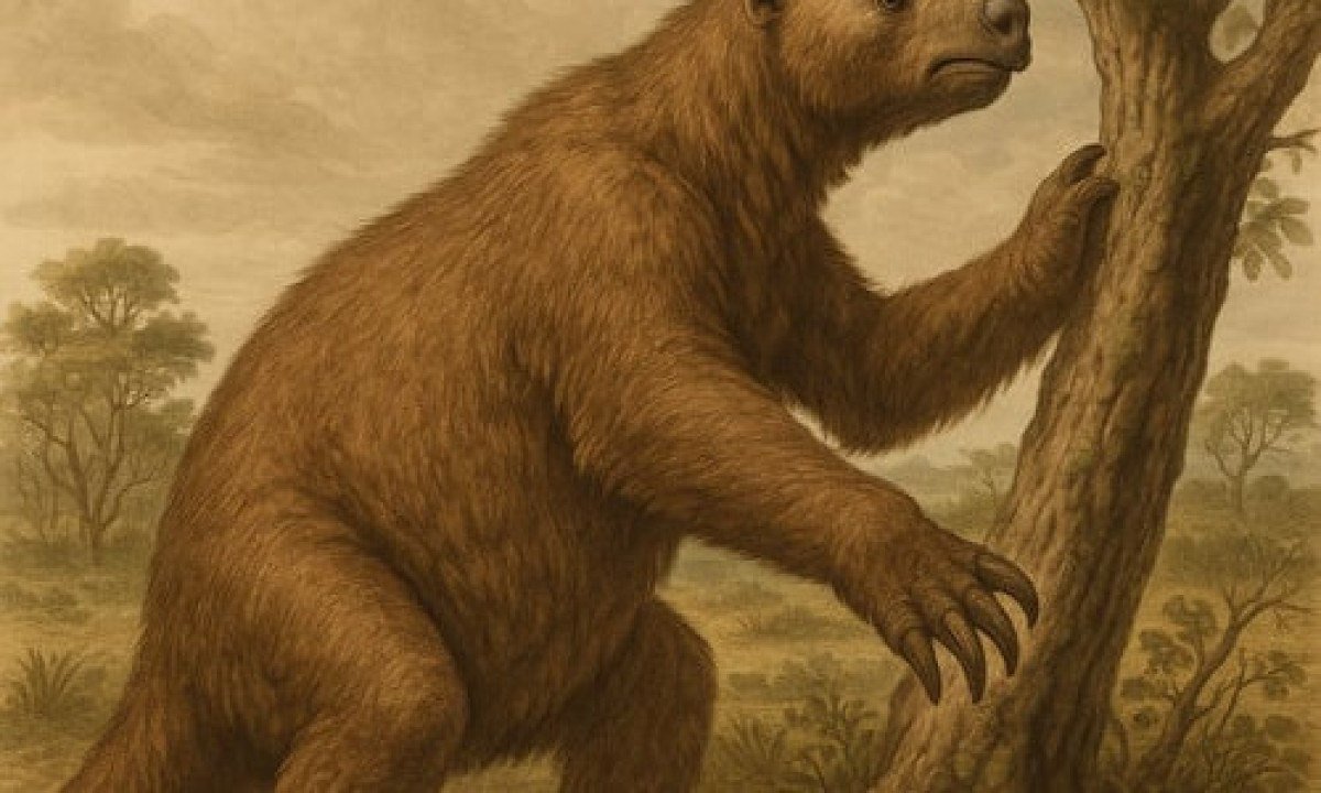O fóssil mais antigo de preguiça-gigtante, de 35 mil anos, indica que elas se espalharam por toda a América do Sul. A análise de ossos e carapaças permitiu a descoberta de que elas se adaptaram a diferentes ambientes para sobreviver. Hoje, as preguiças se concentram em cima dos galhos das árvores. Foto: imagem gerada por i.a