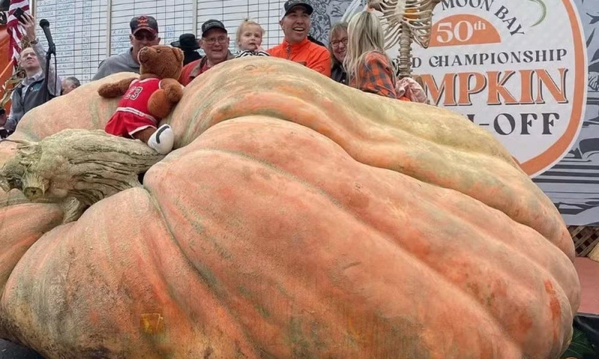 Casal tenta inscrever abóbora gigante em competição, mas pode desistir; saiba o motivo