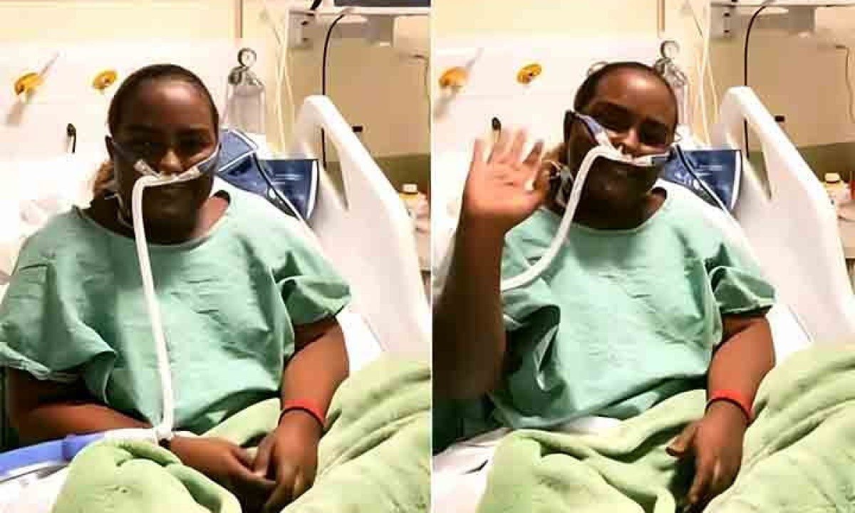 Com dificuldades para respirar, Sabrina precisou passar por uma cirurgia de emergência para implante de uma prótese na traqueia, aumentando o espaço para passagem do ar. Foto: ©Reprodução de vídeo TV Globo