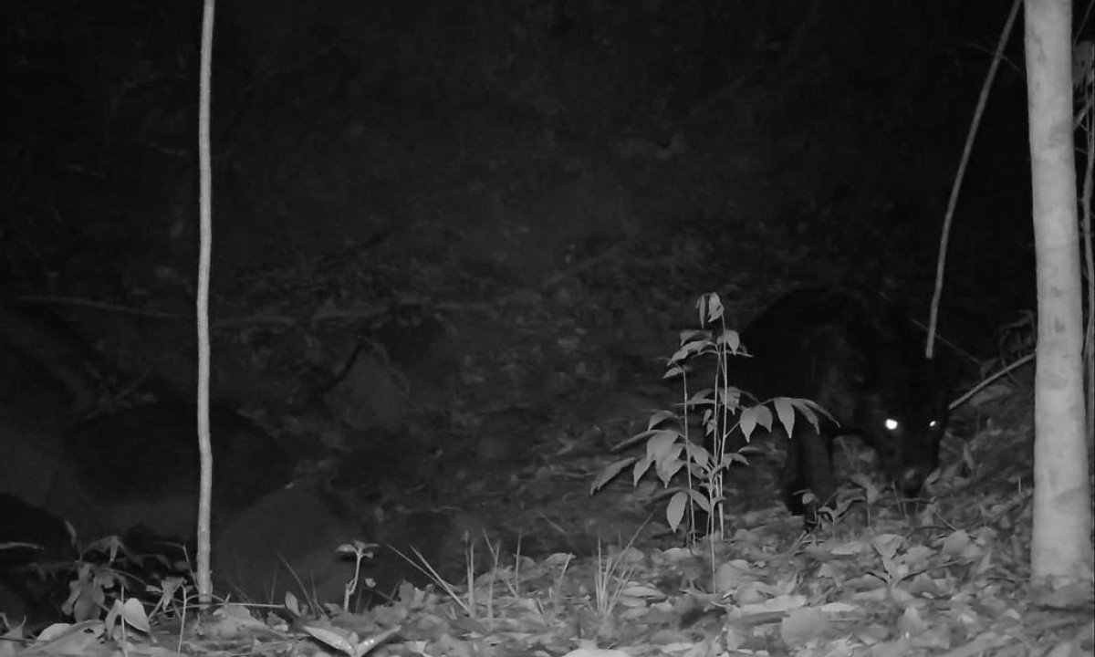 Siga noPopularmente conhecida como onça-preta ou “pantera negra”, uma onça-pintada melânica, ameaçada de extinção, foi fotografada na Reserva Ambiental Porto Cajueiro, mantida pela Usina Coruripe, em Januária, no Norte de Minas Gerais. O registro da espécie rara aconteceu no fim de outubro, mas só foi divulgado nesta terça-feira (14/11) pela assessoria da usina. O felino foi fotografado no limite sudoeste da reserva, próximo à borda da chapada, distante das comunidades que margeiam o rio Carinhanha.