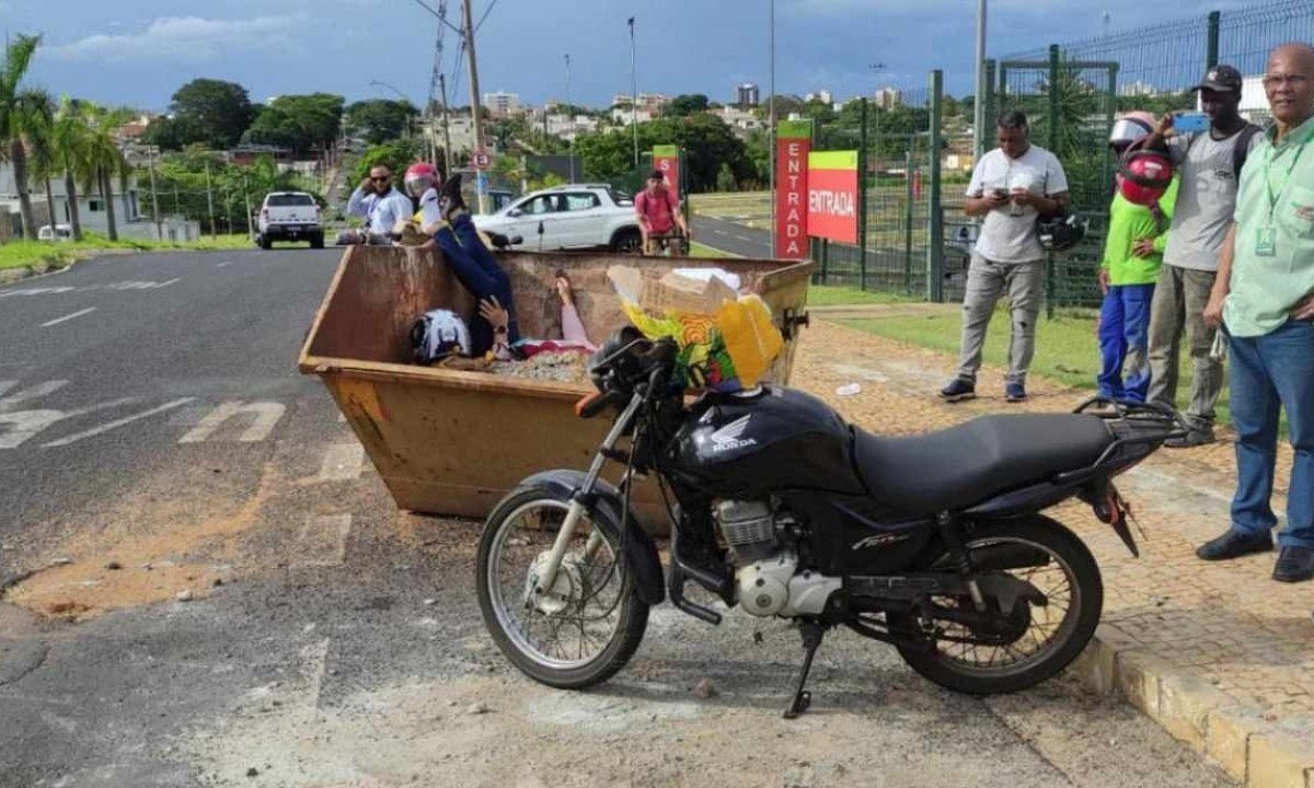 Siga noUma mulher se atrapalhou com as compras, bateu em uma caçamba e acabou dentro da coleta de entulhos. A cena, que aconteceu em Uberlândia, no Triângulo Mineiro, chamou a atenção pelo inusitado. Apesar disso, a motociclista teve ferimentos leves.
