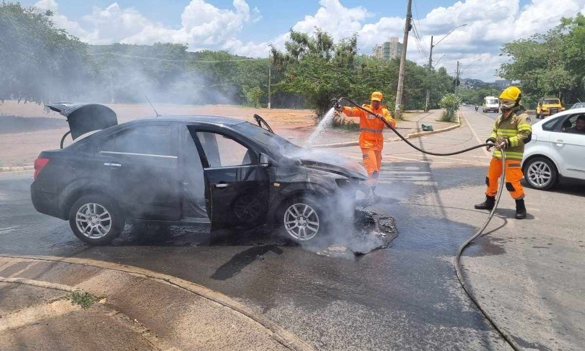 Sob forte calor, carro pega fogo em Montes Claros; veja vídeo