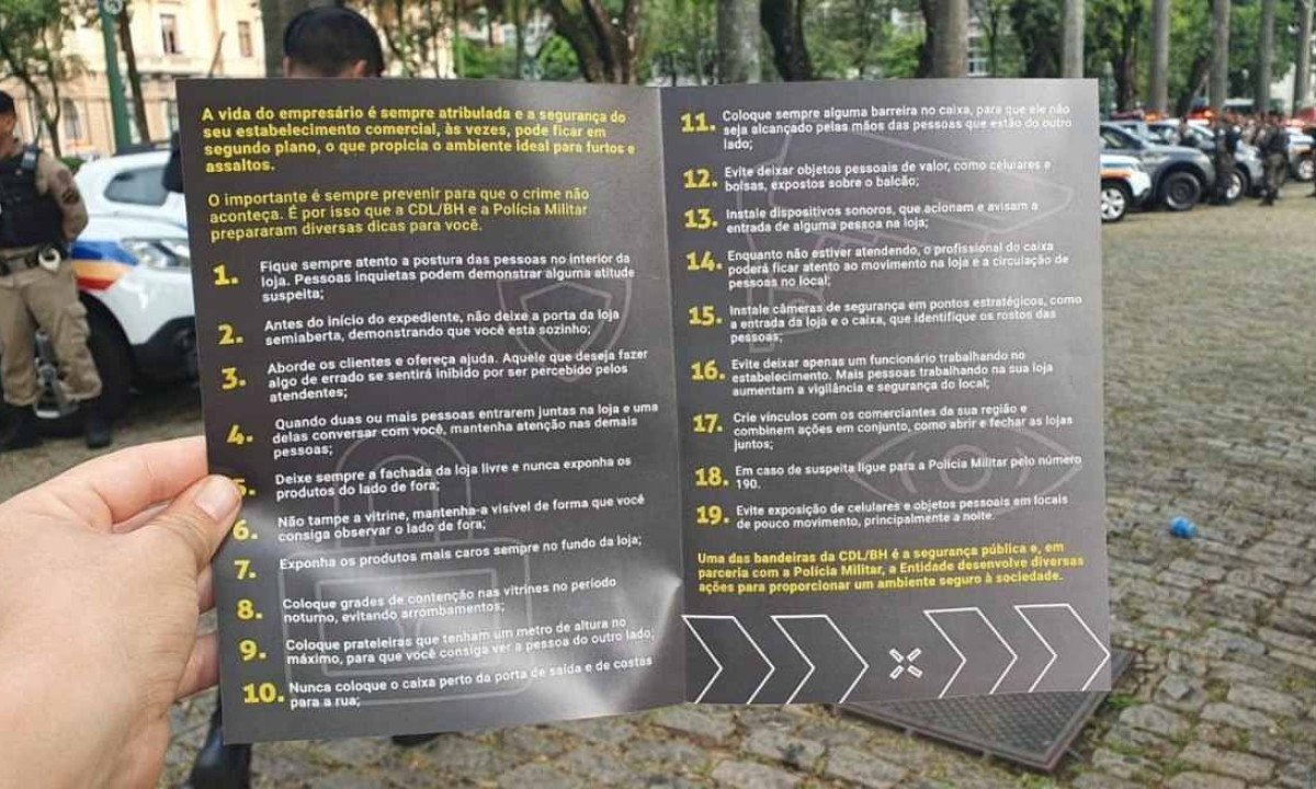 Na capital mineira, a CDL/BH e a Polícia Militar irão fazer uma força-tarefa de conscientização de consumidores e lojistas a respeito de comportamentos e ações para prevenir roubos e furtos. As entidades vão distribuir nos principais centros comerciais e nas bases comunitárias móveis da polícia uma cartilha orientativa com dicas de segurança.