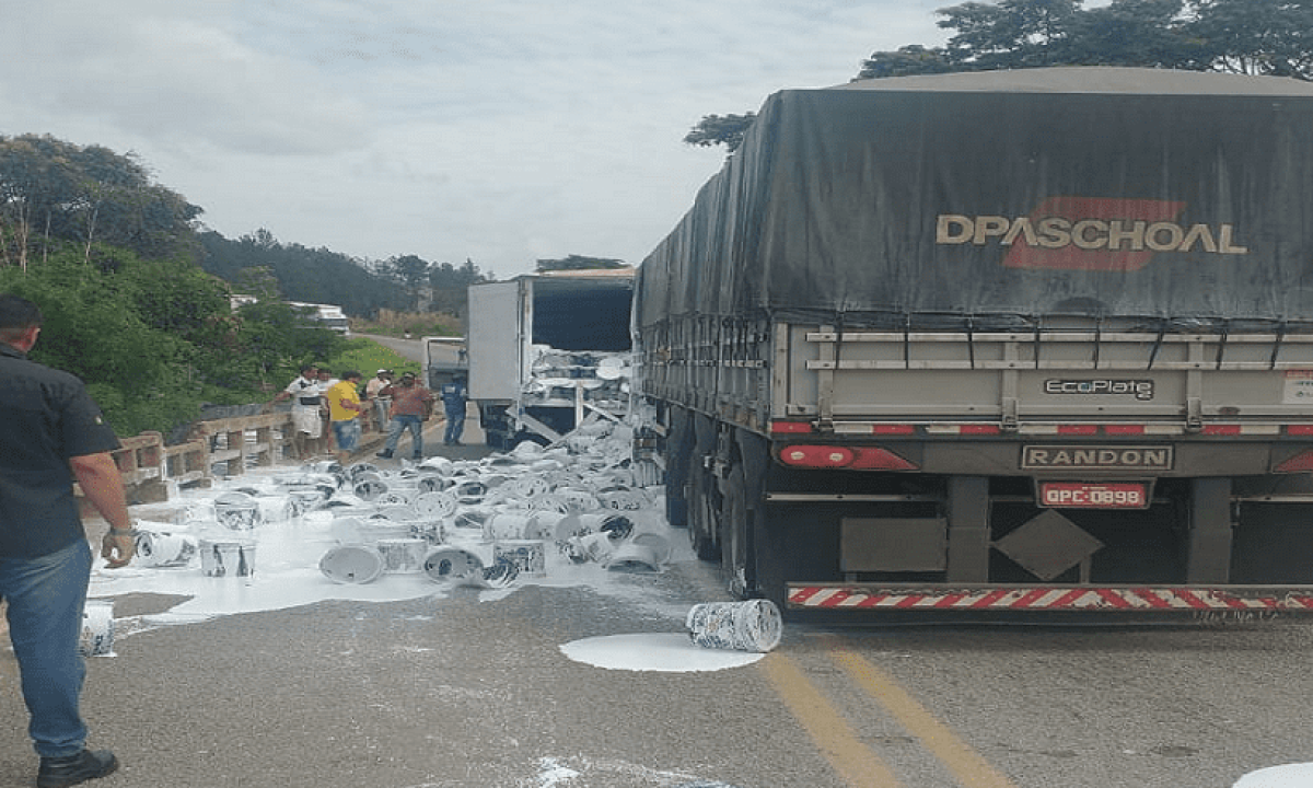 Os militares explicam que o caminhão derramou a tinta exatamente em cima de uma ponte, que não tem acostamento. Assim, impossibilitando desvios no trânsito.
