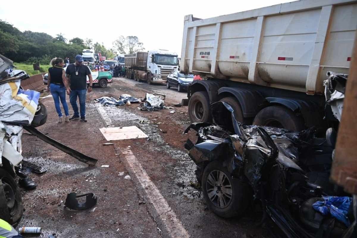 Na imagem, é possível ver o trânsito lento na altura do km 517 quando uma carreta que transportava minério, já sem controle, colidiu com outros carros. Dois veículos leves ficaram destruídos. Veja o vídeo: