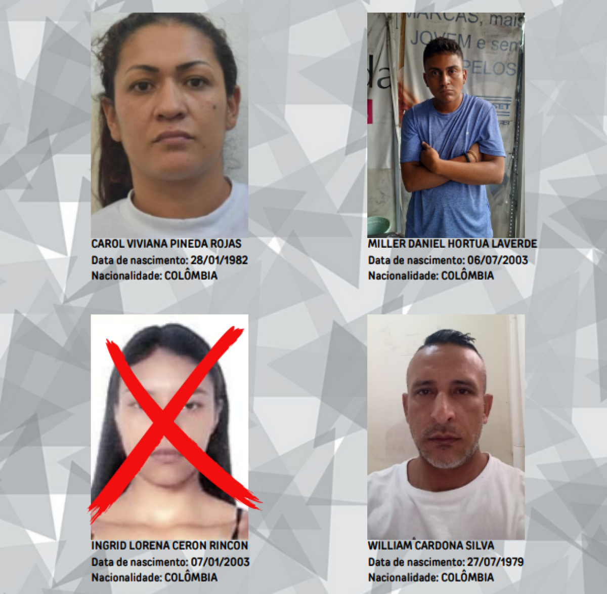 O Ministério Público de Minas Gerais (MPMG) divulgou, na manhã desta terça-feira (28), um cartaz com o título “Procurados”, no qual estão as fotos e nomes dos quatro colombianos suspeitos do furto de um rosário, do século 19, no Museu de Arte Sacra de Ouro Preto, na Região Central de Minas. São eles: William Cardona Silva (também conhecido como Javier Hernando Abril Duque), de 44 anos, Carol Viviana Pineda Rojas, de 41, e Miller Daniel Hortua Laverde, de 20. A quarta suspeita de cometer o crime, Ingrid Lorena Ceron Rincon, também de 20, está presa em São Paulo, dentro da Operação Relicário.
