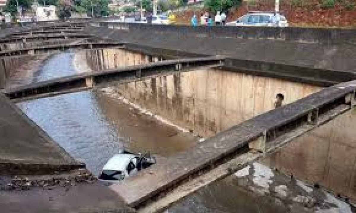 “Sorte”. A palavra define o que aconteceu com um motorista de 37 anos e uma adolescente de 17. Ambos estavam num Ford KA vermelho que capotou e caiu no Ribeirão Arrudas, na altura do Bairro Vera Cruz, na Região Leste de Belo Horizonte. O veículo ficou com parte da cabine submersa, caindo com as rodas para cima.