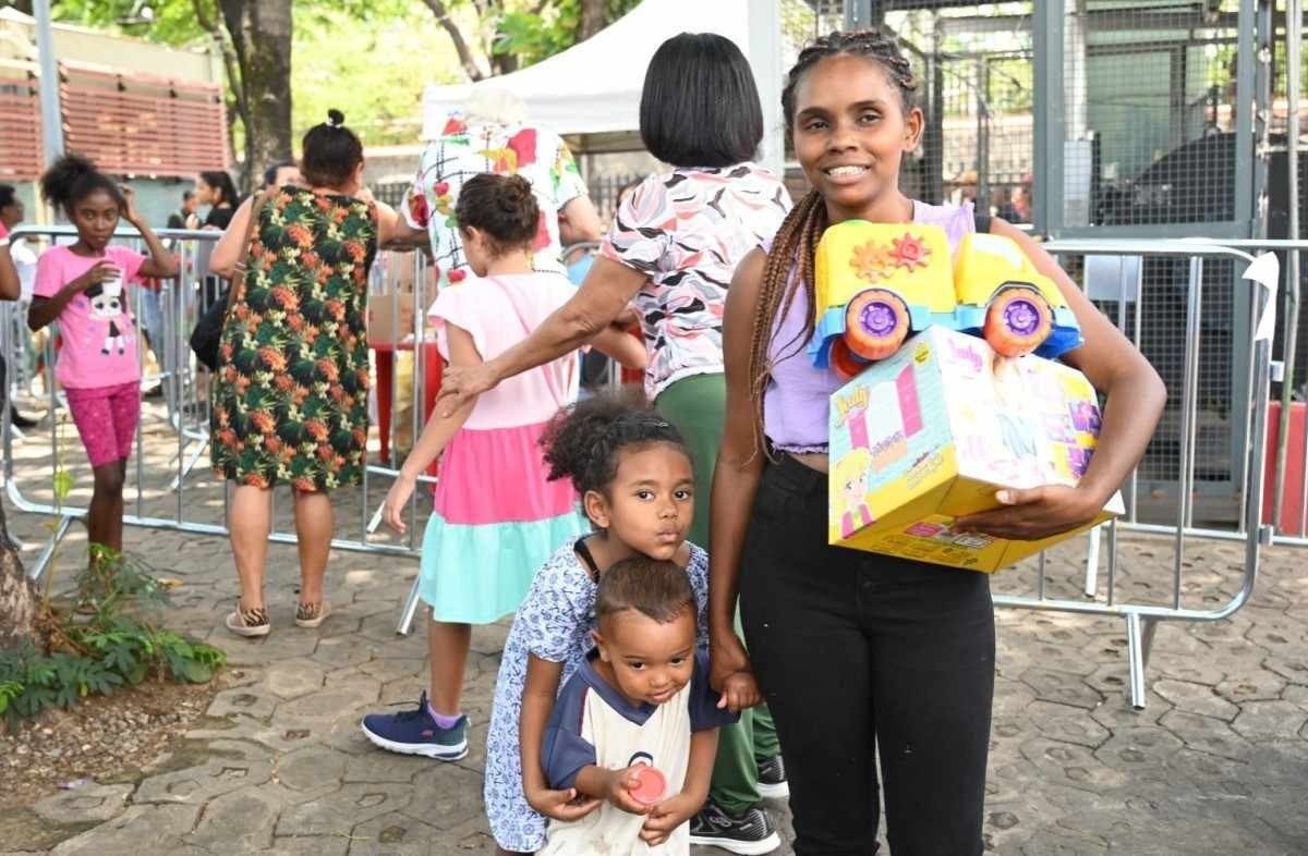 A auxiliar de limpeza Gabriela Costa, de 26 anos, foi até o Restaurante Popular Herbert de Souza para almoçar com os filhos e ainda voltar para casa com presentes. A pequena Sofia, de cinco anos, contou à reportagem que vai brincar no pula-pula instalado no Centro da cidade e depois vai aproveitar a nova casinha de boneca.
