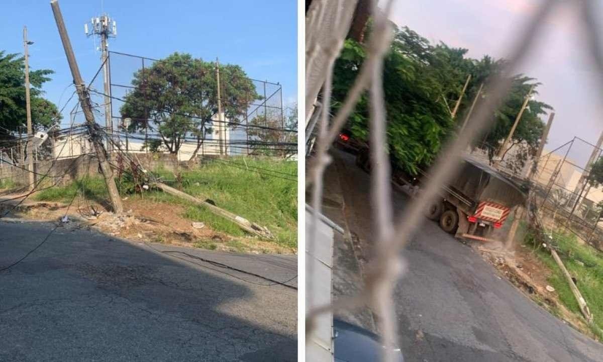 Carreta arranca postes em BH e bombeiros avaliam risco de eletrocussão
