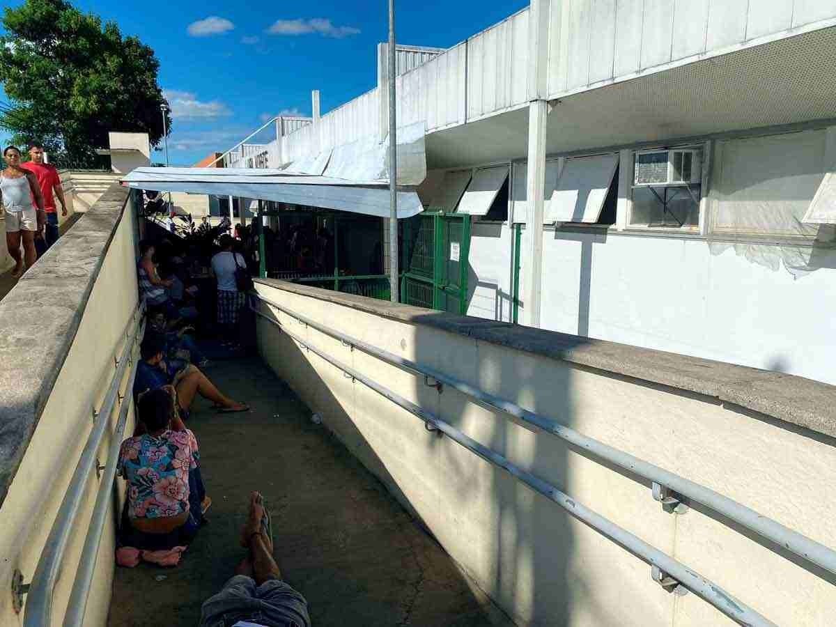Com a UPA e a estrutura de apoio lotados, pacientes faziam o que podiam ao longo do dia para ficar mais confortáveis. Foi o caso de Ilídia Rosa Monteiro dos Reis, de 65 anos, que chegou à unidade por volta das 10h e até as 15h40 havia passado apenas pela triagem. Com dores no corpo e sintomas de dengue, ela achou melhor aguardar ser levada para a tenda de atendimento deitada em uma rampa de acesso. “Estou esperando desde cedo, mas esse povo não está chamando, não sei o que aconteceu (...). Até agora ninguém disse nada”, desabafou.