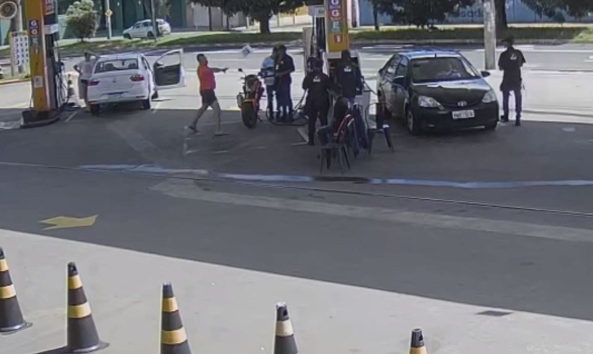 Na sequência, o agressor ainda puxa o cabelo da mulher. Outros colegas frentistas a defendem e batem no homem, que ficou ferido. A Polícia Militar foi acionada.