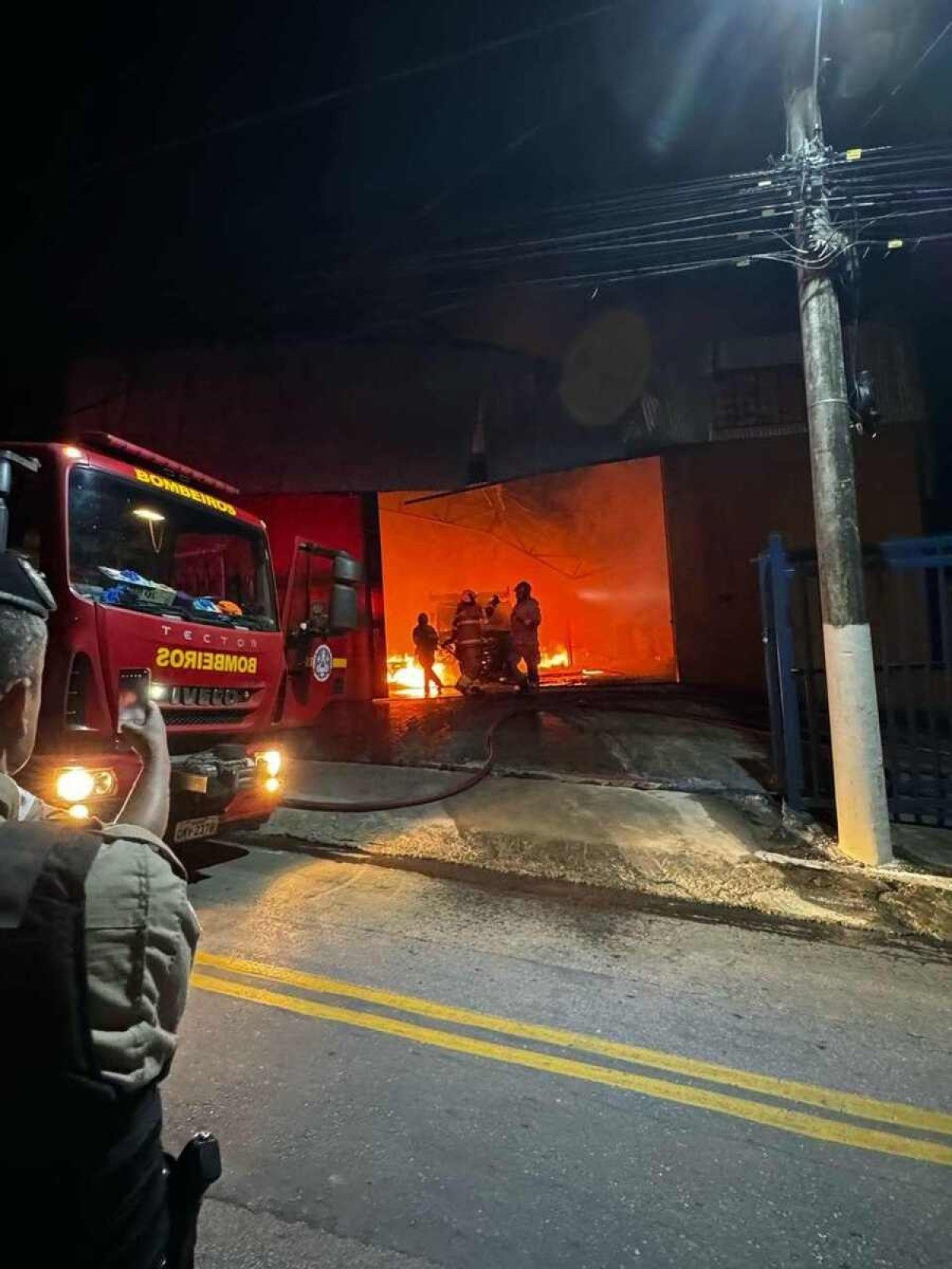 Um incêndio assusta moradores e mobiliza o Corpo de Bombeiros no centro de Confins, na Região Metropolitana de Belo Horizonte, na noite desta sexta-feira (19).