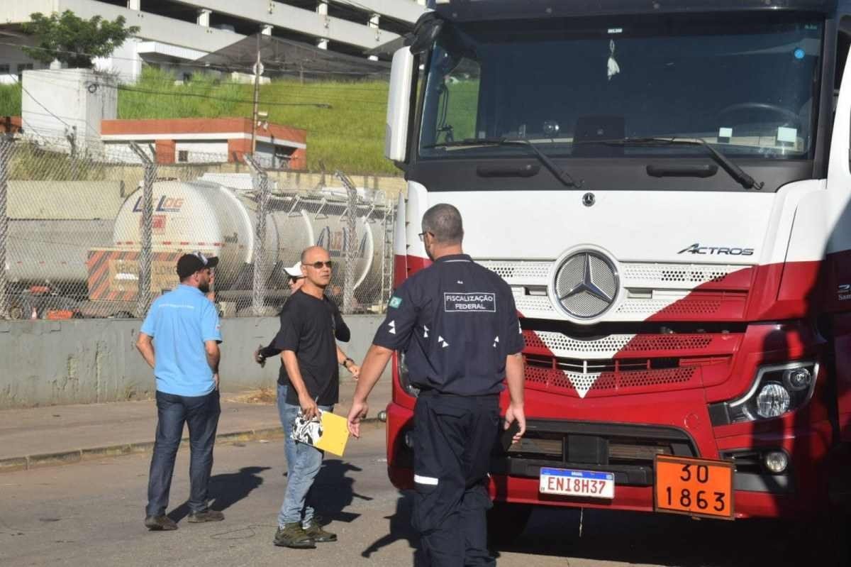 A fiscalização percorreu as filas de caminhões-tanque que esperavam para serem carregados com os combustíveis e verificou as condições dos veículos e a situação trabalhista dos motoristas.